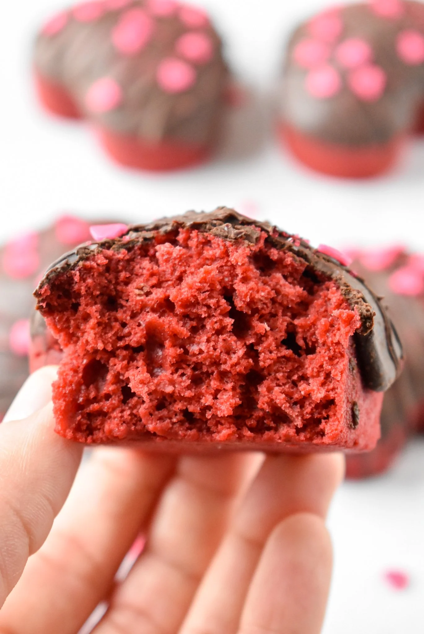 If you want a simple and inexpensive treat for your loved ones on Valentine’s Day, then you’ve come to the right place! These red velvet hearts look so beautiful and are very easy to make. I love the combination of the fluffy red velvet cakes with the chocolate, and of course, who doesn't love sprinkles?!